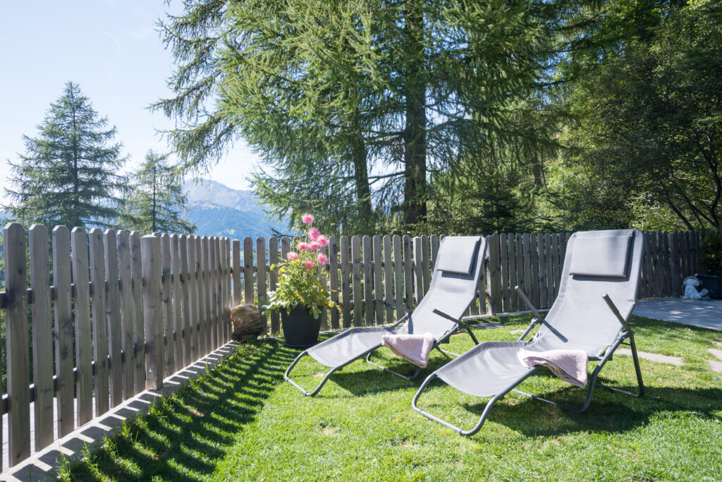 Die sonnige Terrasse lädt zum Entspannen ein, mit Liegestühlen zum Ausruhen, Sonnenbaden und einem gemauerten Holzkohlegrill für kulinarische Erlebnisse. Ein liebevoller Kräutergarten steht zur Verfügung.