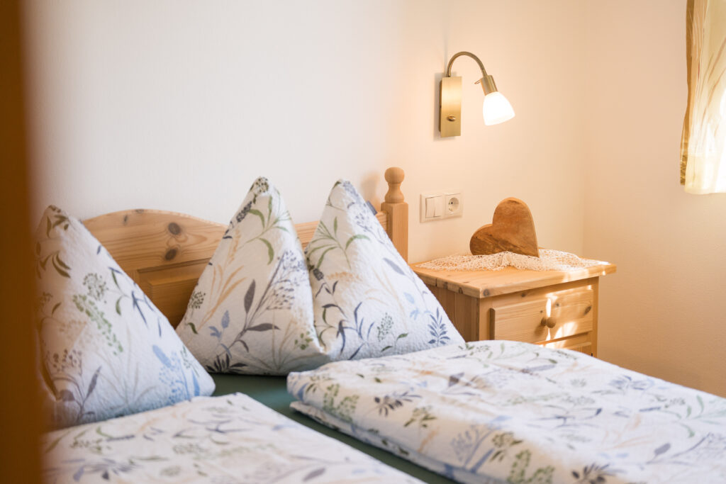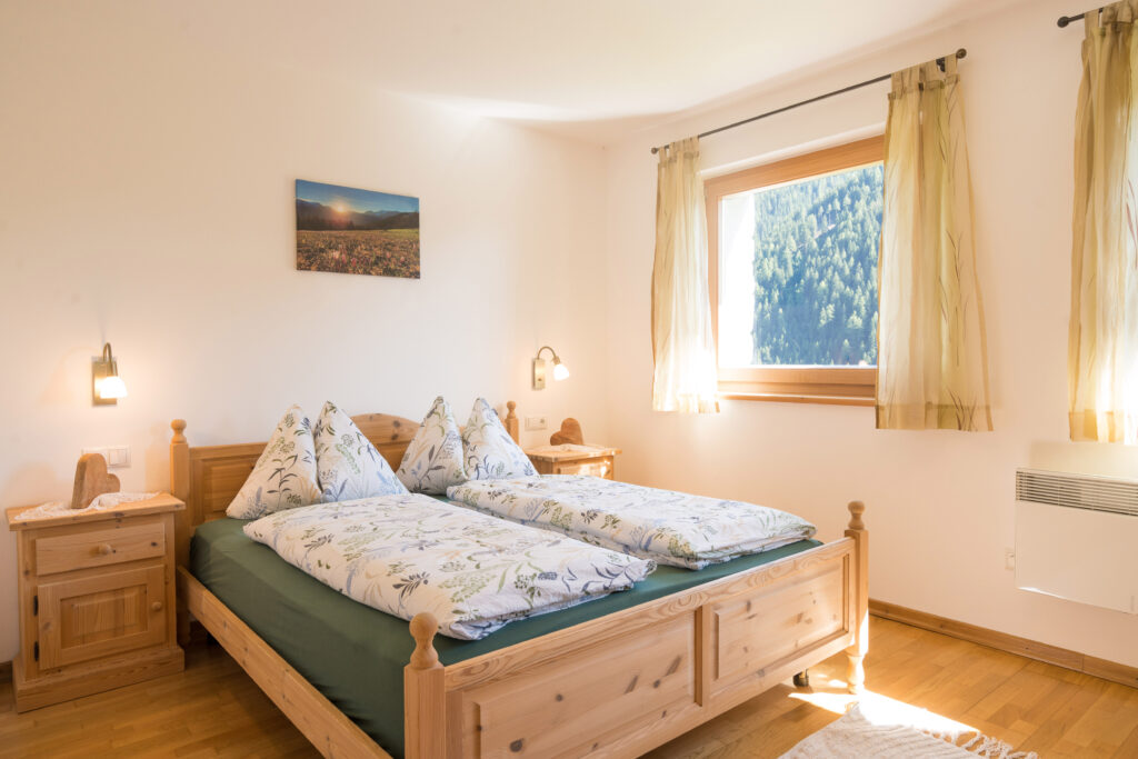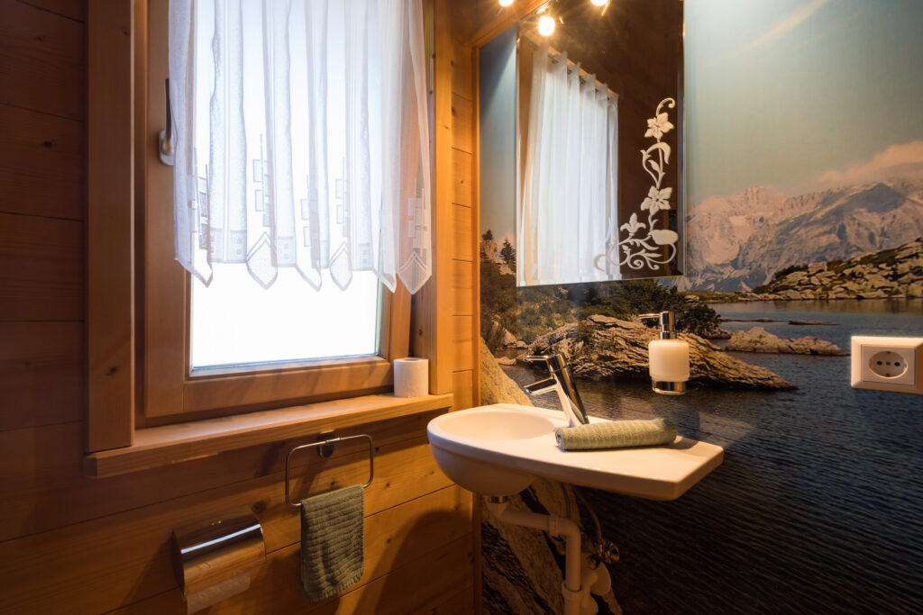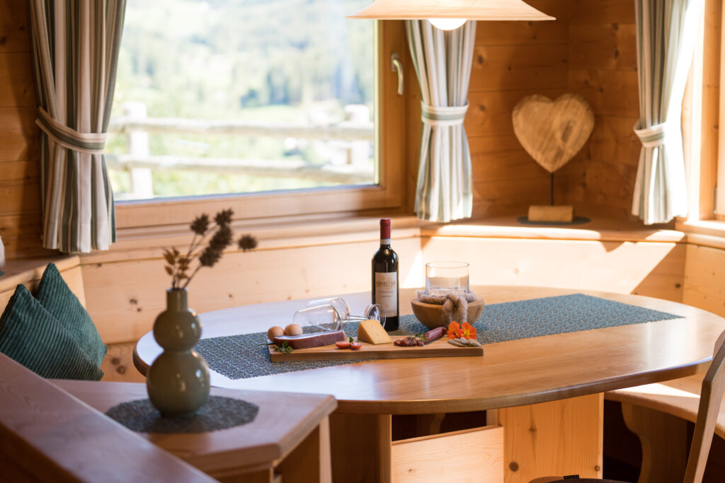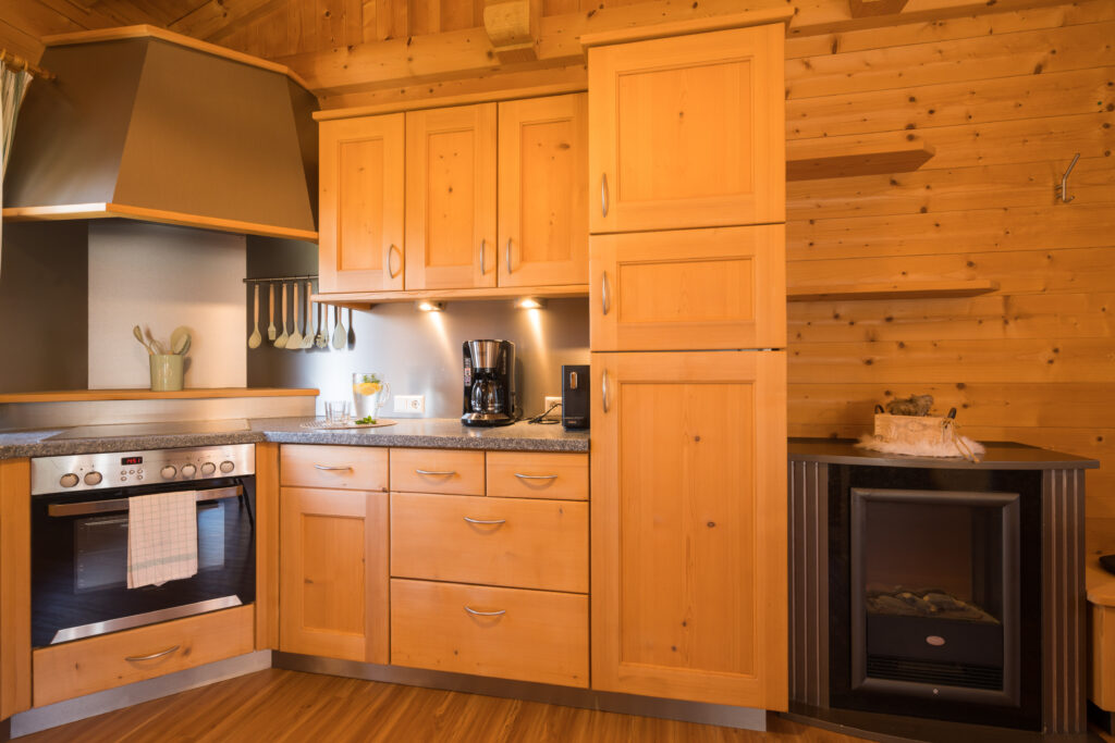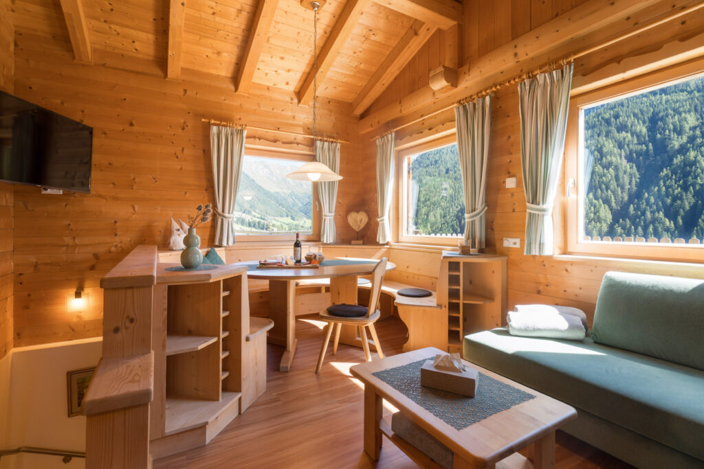 Das gesamte Innere des Chalets ist aus Holz gefertigt, strahlt Gemütlichkeit aus und bietet einen lichtdurchfluteten Wohlfühlraum mit einer voll ausgestatteten Küche, einer gemütlichen Sitzecke und einem entspannenden Bereich mit Couch und Sat-TV. Im Untergeschoss befinden sich zwei hübsche Doppelzimmer mit jeweils einem Doppelbett (160 x 190 cm) sowie ein Badezimmer mit Dusche, Waschtisch, WC und Bidet. Ein Zusatzbett für Kinder bis 14 Jahre ist verfügbar.