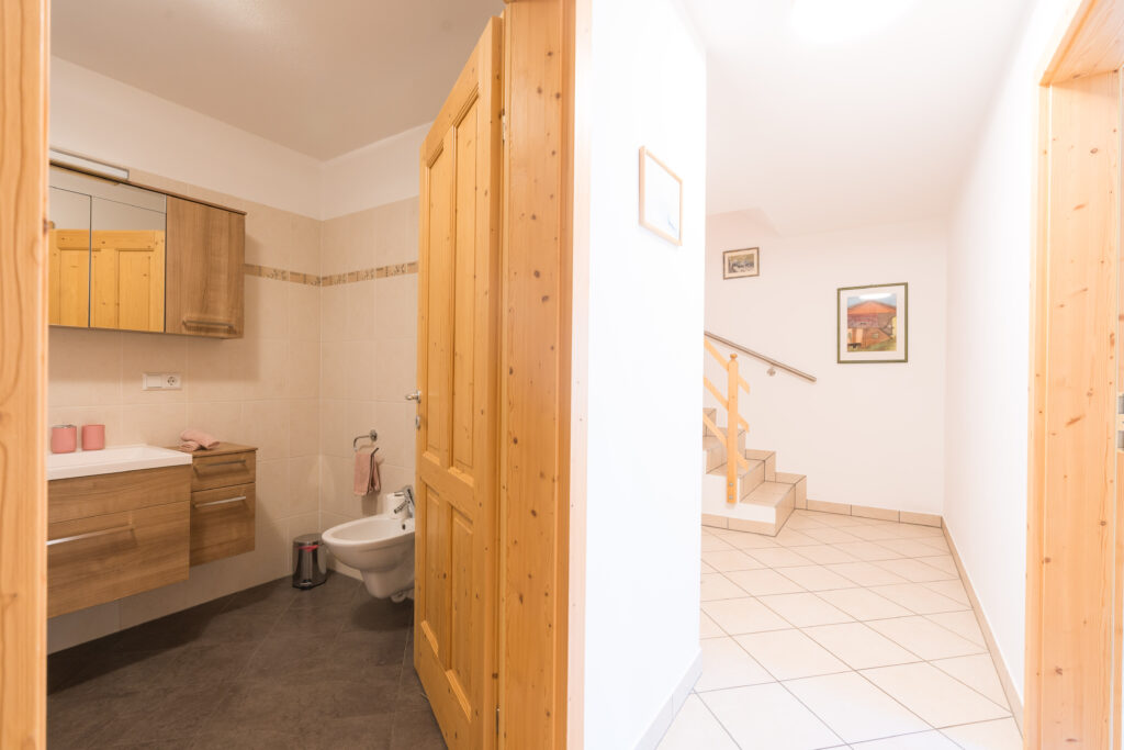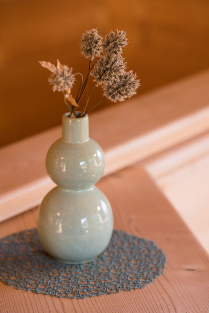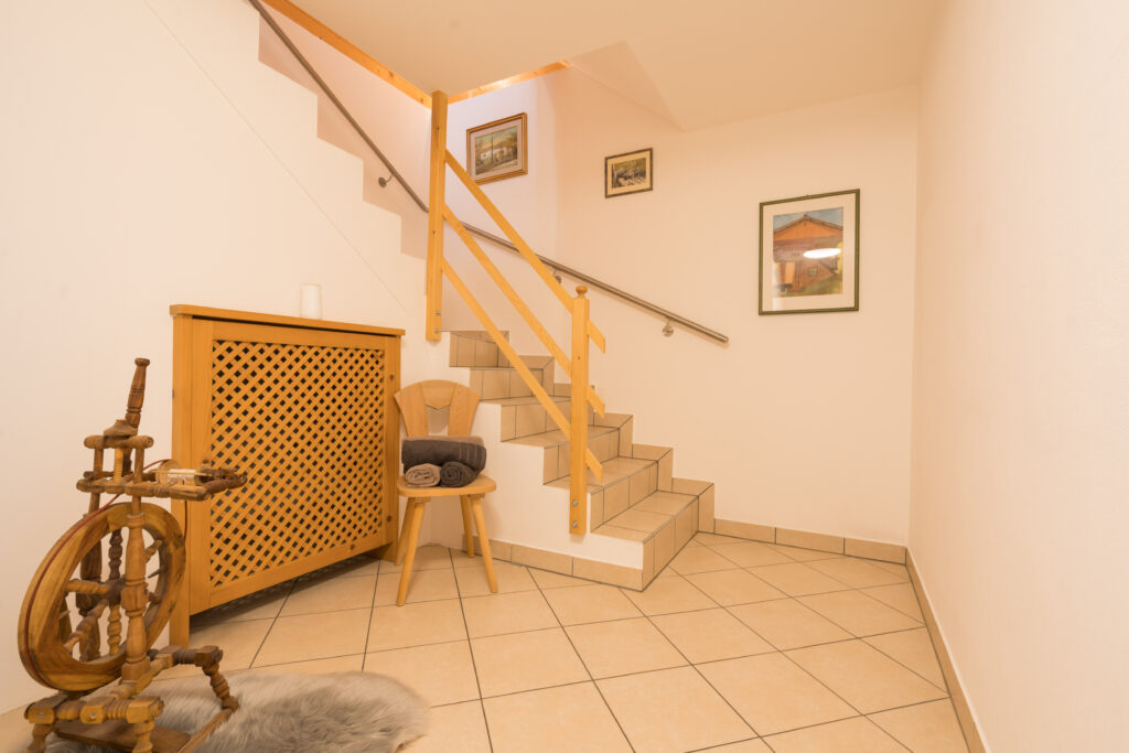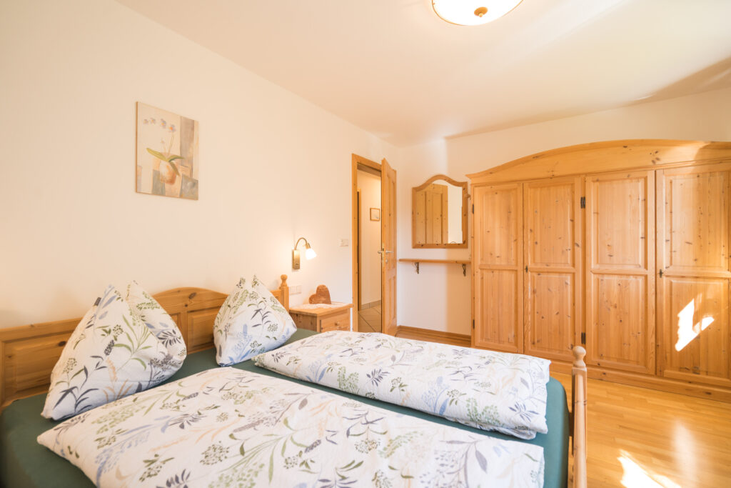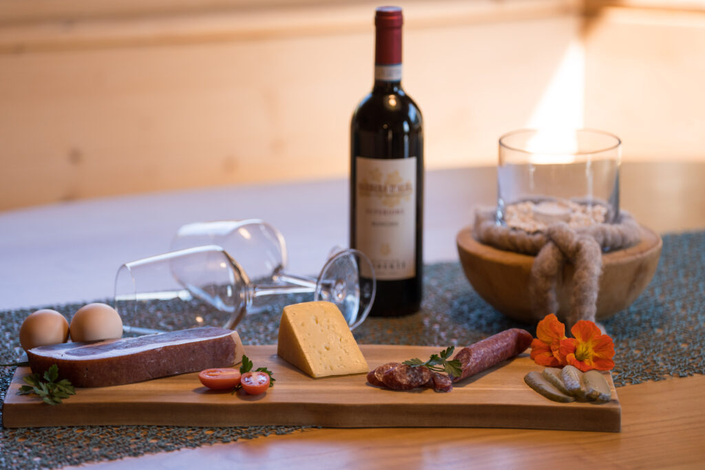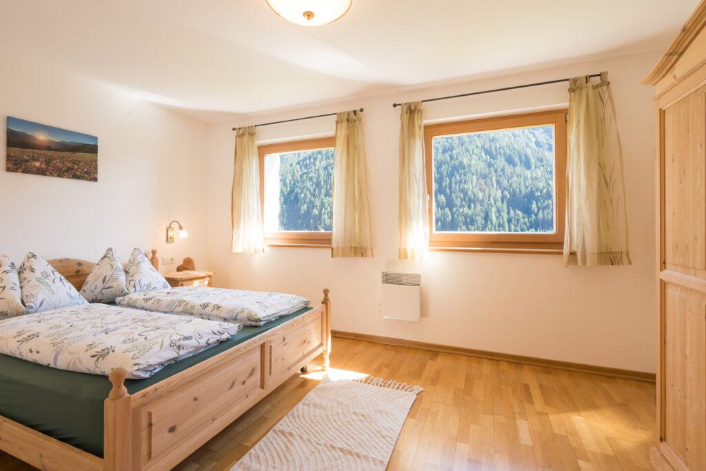 Das gesamte Innere des Chalets ist aus Holz gefertigt, strahlt Gemütlichkeit aus und bietet einen lichtdurchfluteten Wohlfühlraum mit einer voll ausgestatteten Küche, einer gemütlichen Sitzecke und einem entspannenden Bereich mit Couch und Sat-TV. Im Untergeschoss befinden sich zwei hübsche Doppelzimmer mit jeweils einem Doppelbett (160 x 190 cm) sowie ein Badezimmer mit Dusche, Waschtisch, WC und Bidet. Ein Zusatzbett für Kinder bis 14 Jahre ist verfügbar.
